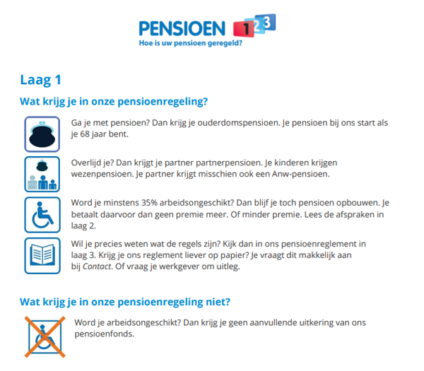 - In laag 3 vind je belangrijke documenten, zoals het pensioenreglement.